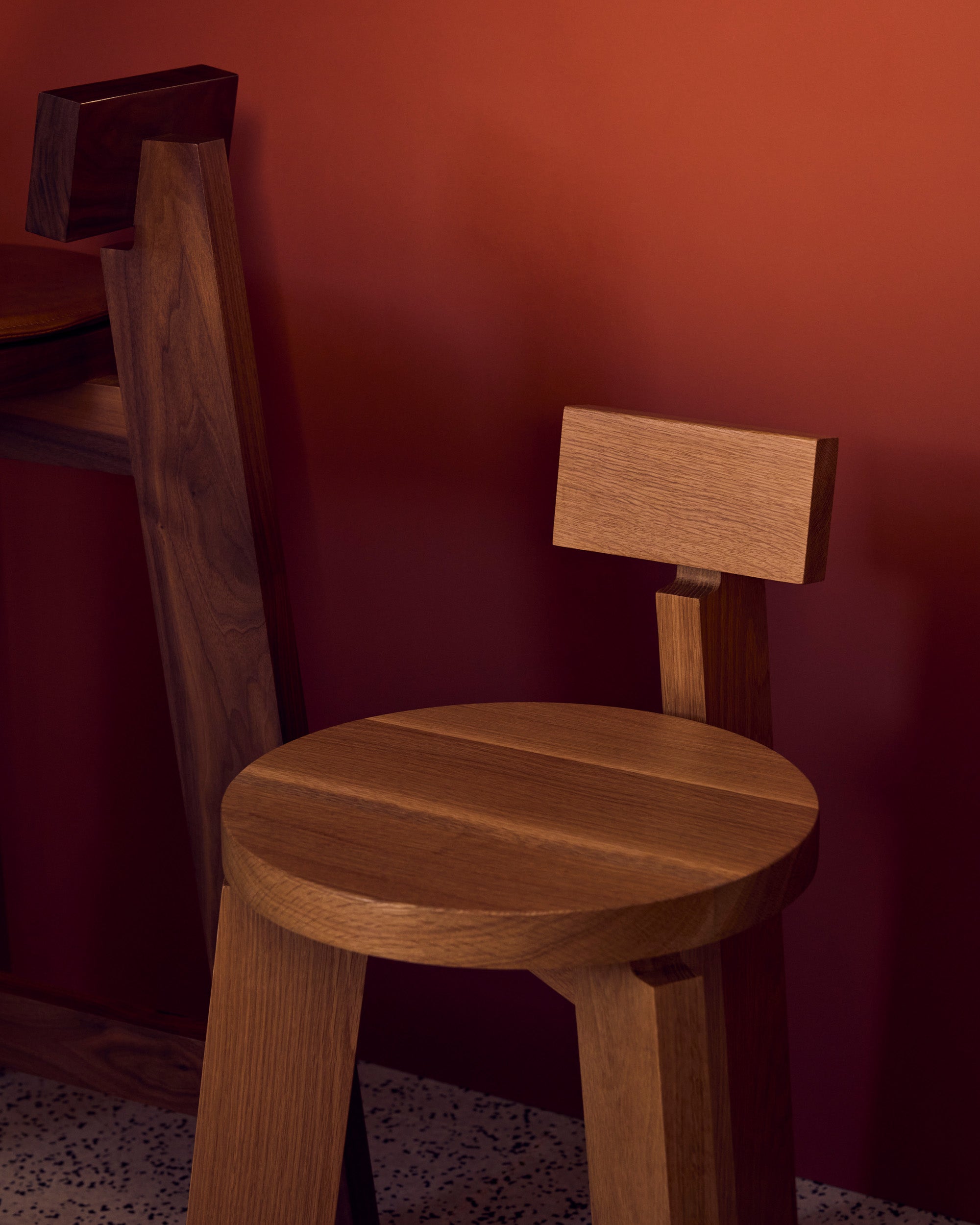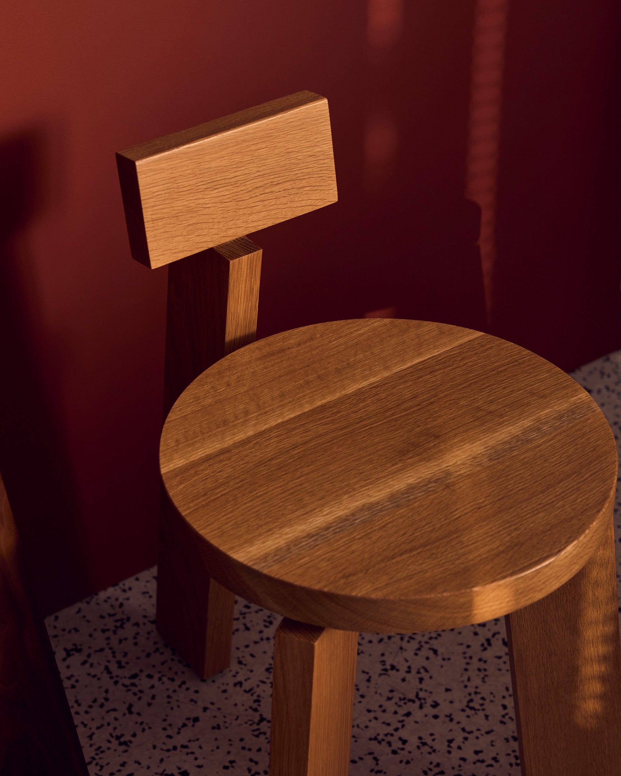 Like other pieces in the Here & There exhibition, BUOY reflects Dutoit’s commitment to crafting objects that quietly hold space - anchored by material integrity and resolved form. The stool presented here is made from sustainably sourced oak, finished to highlight the natural grain and tonal warmth of the wood.