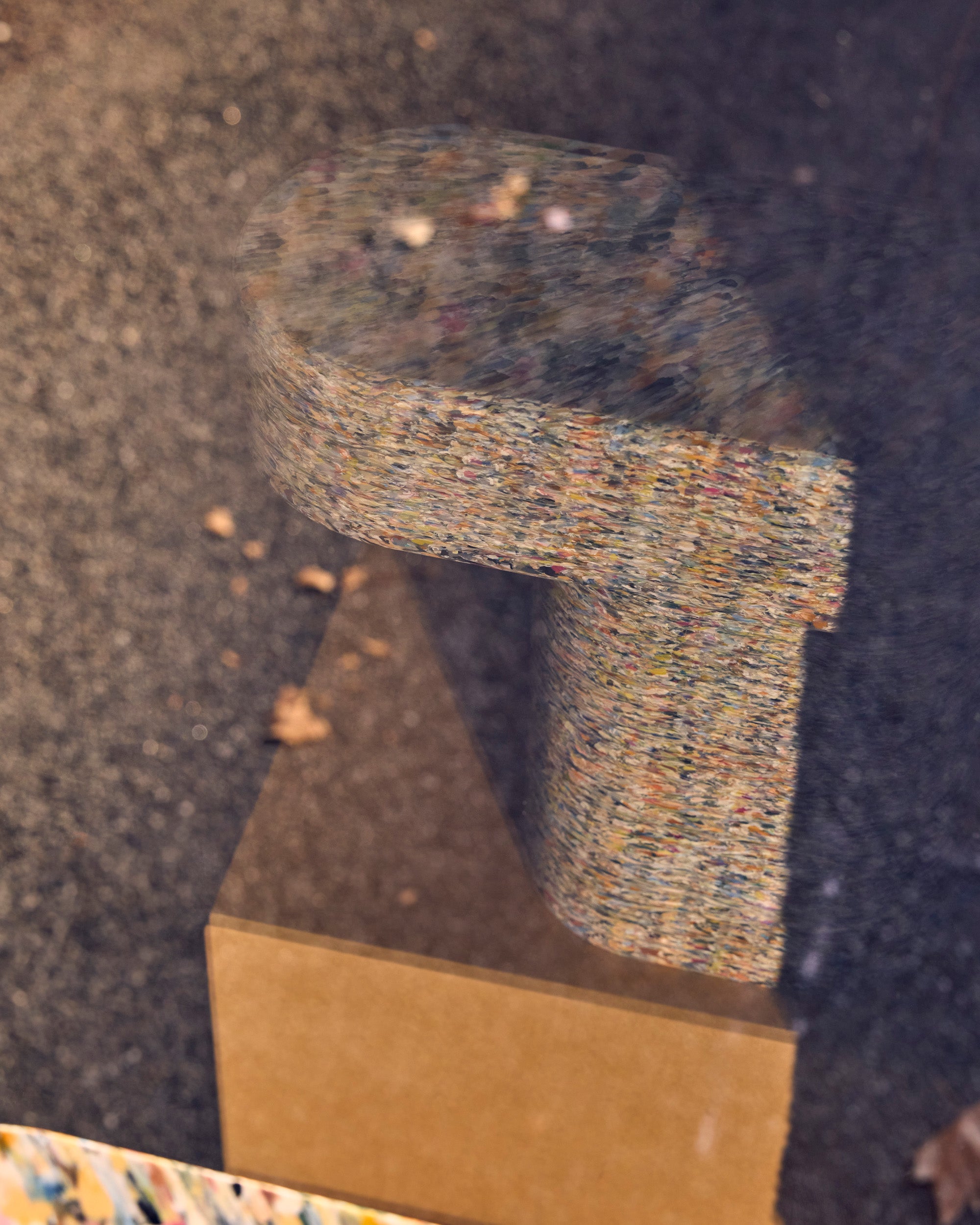 Presented in two distinct material iterations for Here & There, MASS reflects Dutoit’s interest in exploring form through the lens of sustainability, texture, and permanence.