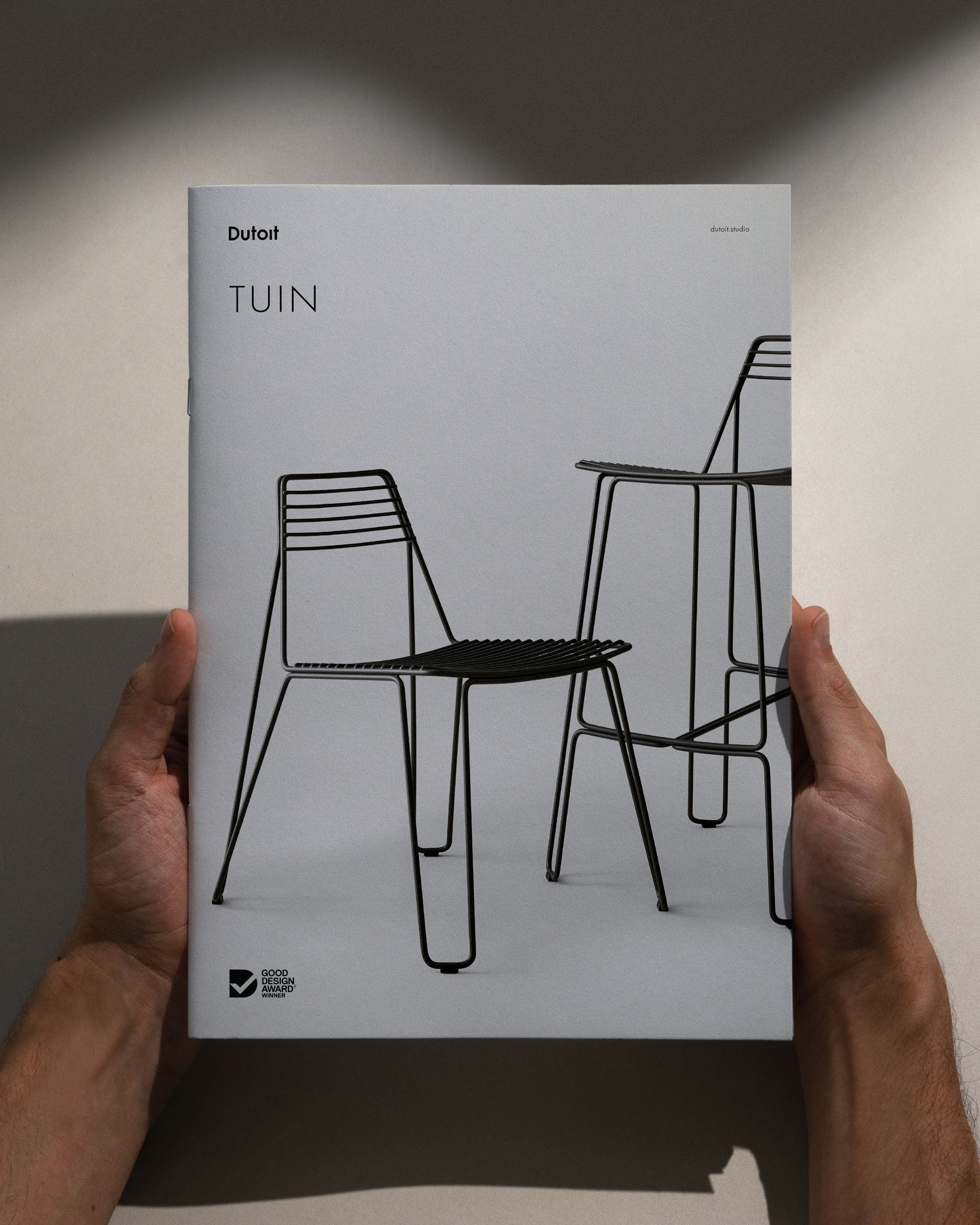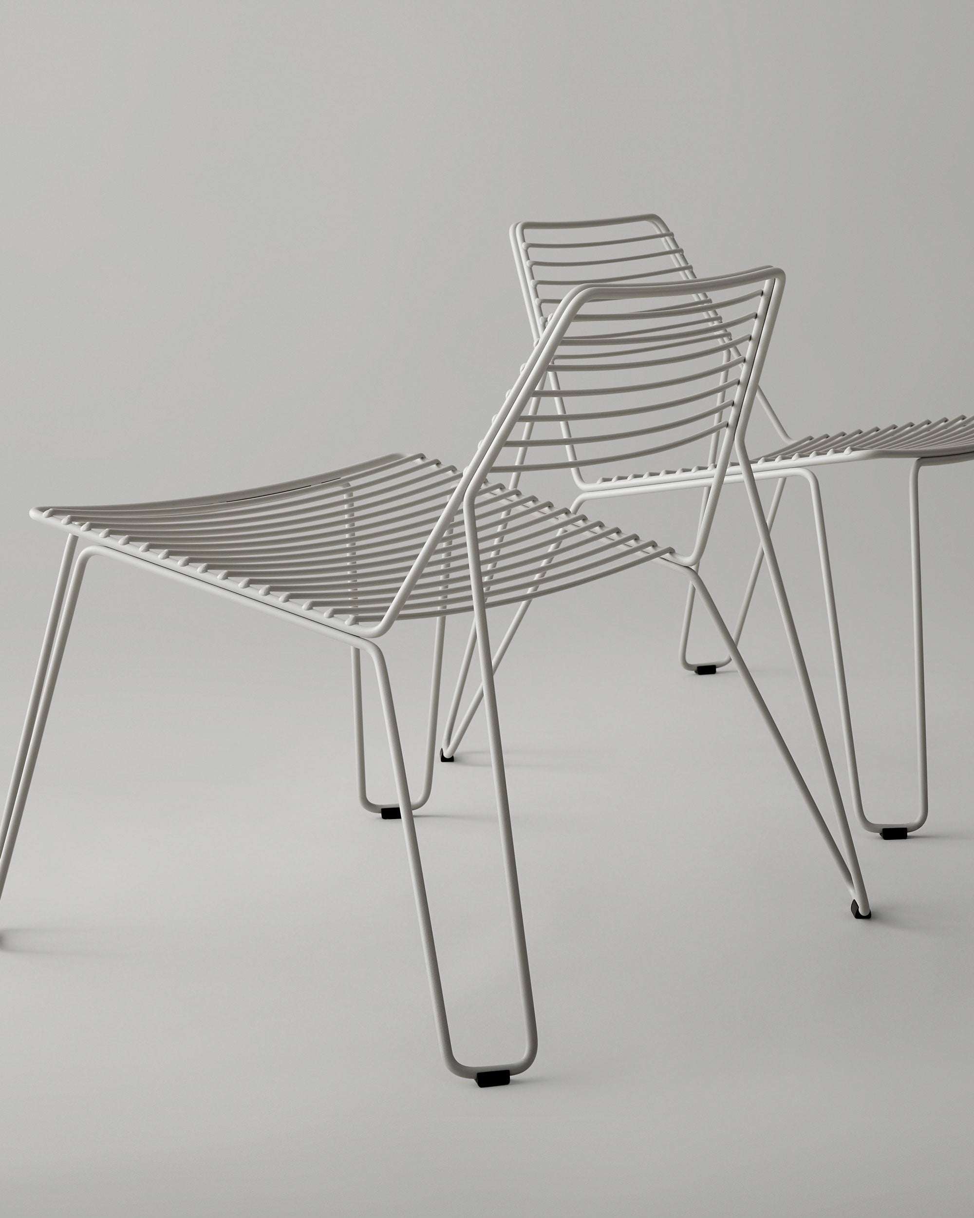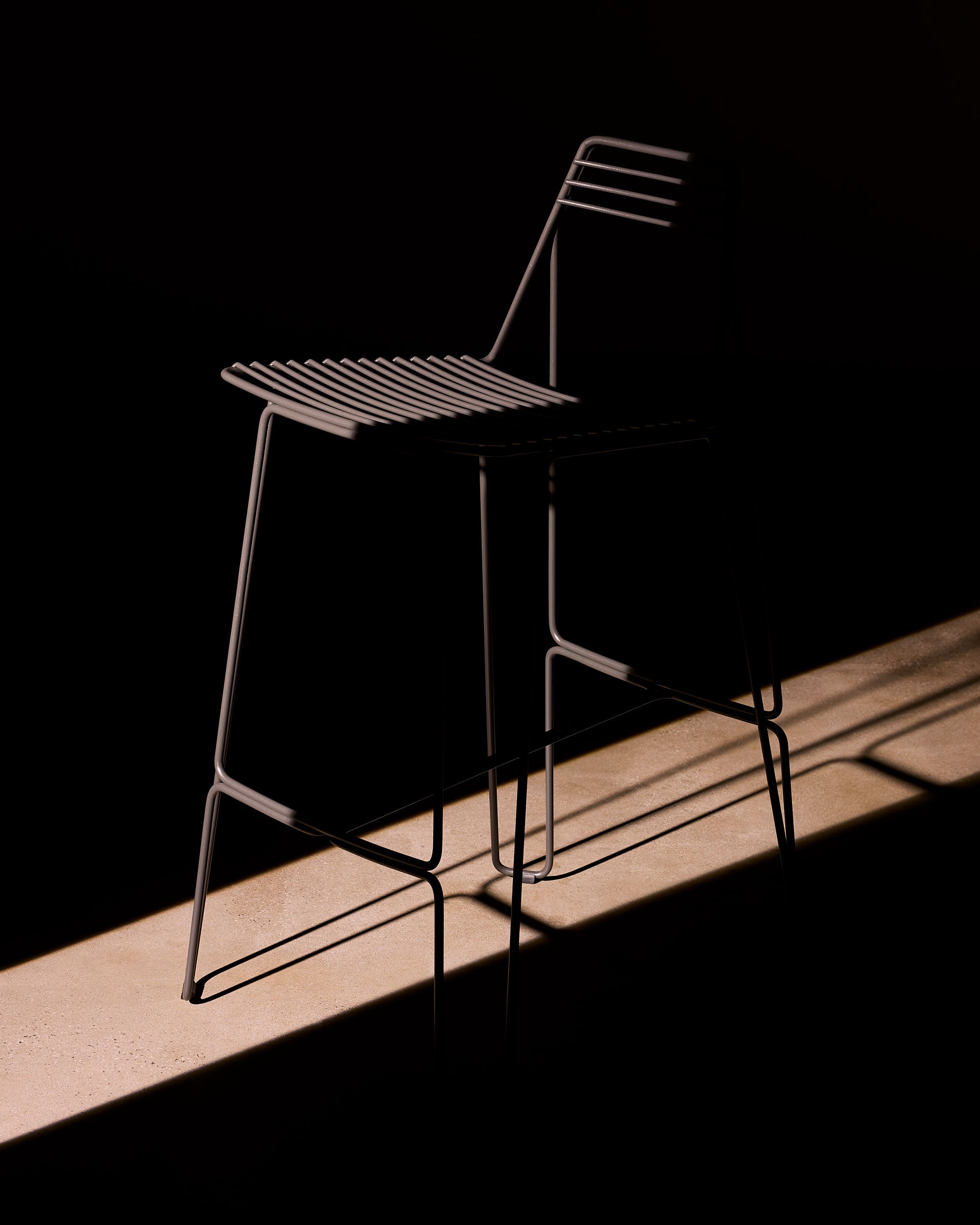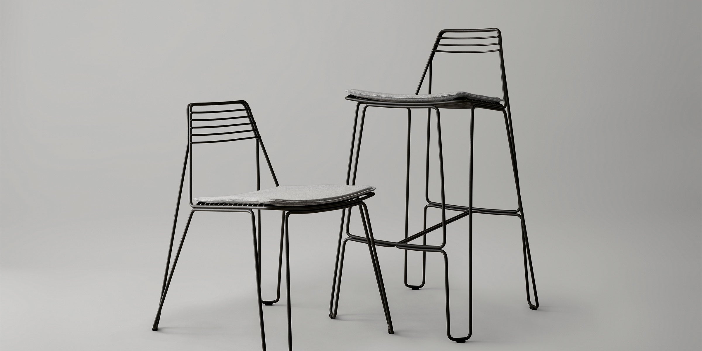The TUIN collection includes a Dining Chair, Lounger, Low Stool, Counter Stool, and Bar Stool, as well as a Low Table and Café Table with slimline steel tops, designed for use both indoors and outdoors. Custom table top and powder coat options are available to suit your specific project needs.